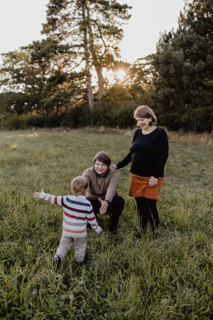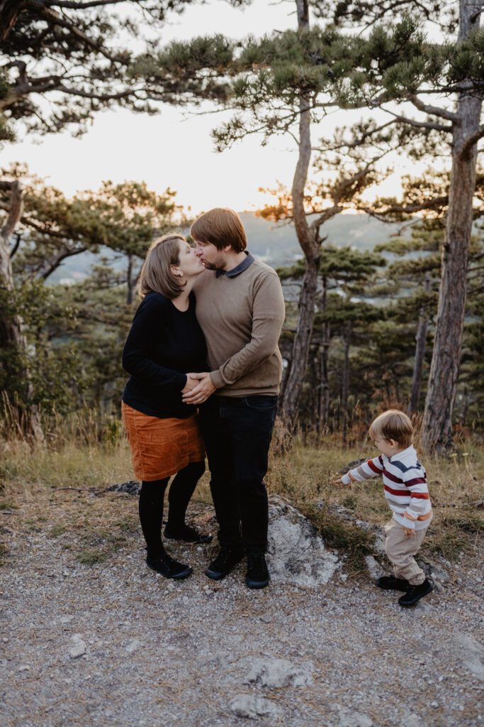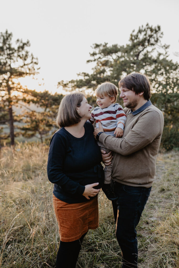 September ist ein besonders schöner Monat für Familienerinnerungen. Die Sonne geht bereits ein wenig früher unter und somit ist die perfekte Shootinguhrzeit gegen 17.30. So auch bei diesem Babybauch-Familienshooting. Wir haben uns auf dem Parkplatz der Burg Liechtenstein in Mödling getroffen und sind 10 Minuten gemütlich rauf zur Location gegangen. Dort angekommen, habe ich meine Kamera ausgepackt und wir haben gemütlich mit dem Fotoshooting begonnen. Ich mache immer ganz viel in Bewegung mit meinen Familien, weil genau dadurch die natürlichsten Erinnerungen entstehen.